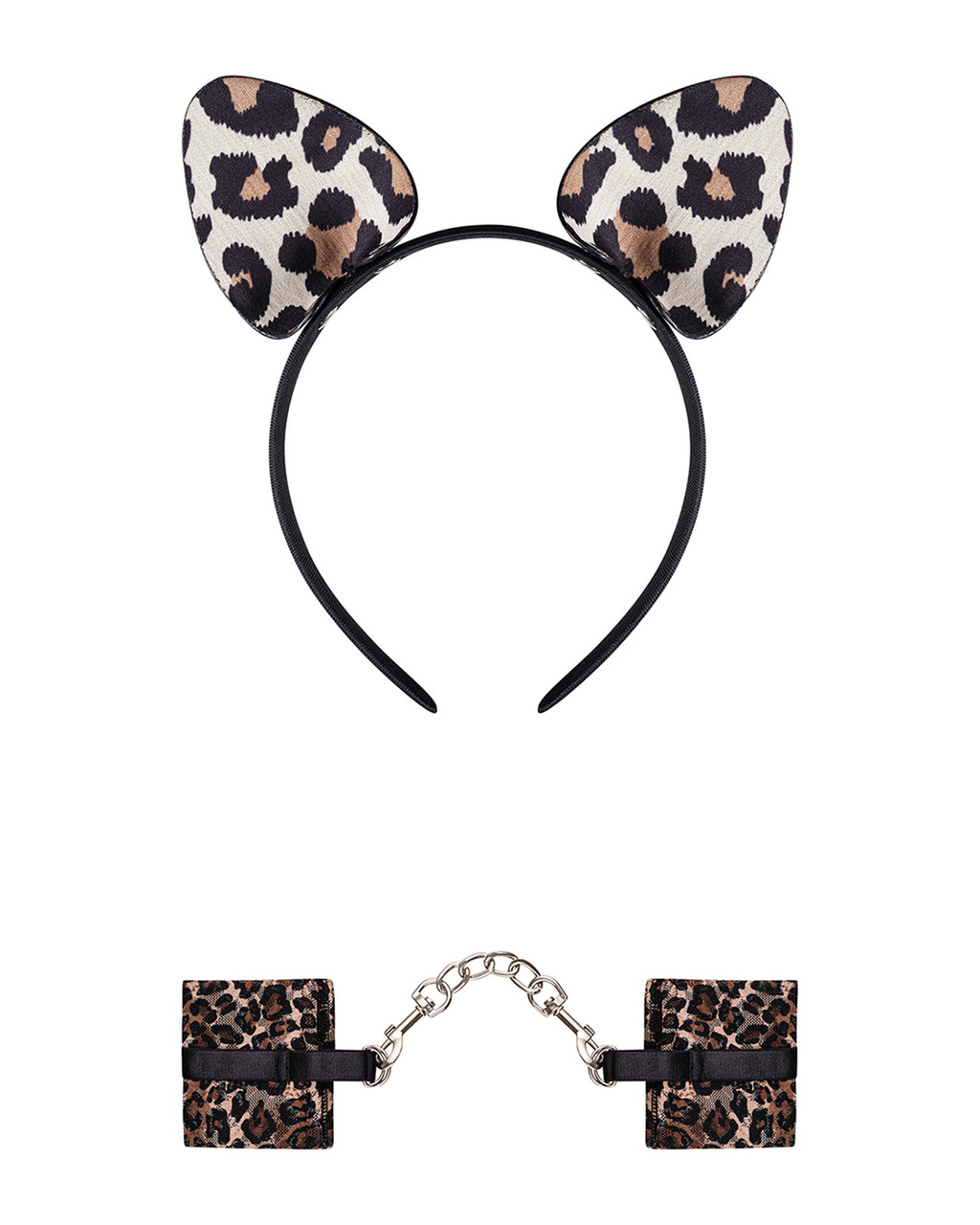Набір з вушок кішки та наручників з ланцюжком Tigerlla леопардовий принт, бежевий, чорний, One Size Доведіть своєму господареві яка ви покірна кішечка! Цей чарівний набір створений спеціально для того, щоб ви могли втілити всі свої фантазії, і розкрити всі свої секрети. Надягніть ці чарівні котячі вушка, боді з інтимним доступом і анальну пробку з чорним хвостиком для того, щоб створити образ норовливої кішки. Принесіть своїй другій половинці наручники з ланцюгом, щоб показати, що ви готові підкоритися! Наручники дуже м'які та зручні, шкарпетка принесе вам одне задоволення. Коротенький ланцюжок на наручниках знімається, тому ви можете просто залишитися в леопардових манжетах. Гра буде захоплюючою і запам'ятатись вам надовго! Характеристики: Матеріал - поліуретан, ПВХ, метал Колір - бежевий, коричневий, чорний Принт - леопардовий Розмір – універсальний Штрих код: 5901688234136